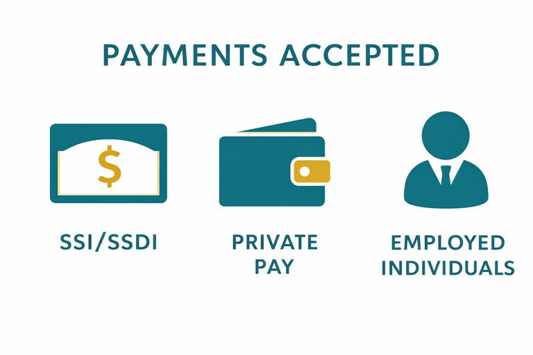 Our goal is to ensure that individuals from different financial backgrounds have the opportunity to live in a structured, safe, and supportive environment. If you have questions about payment options or would like assistance determining eligibility, our team is here to help. Please feel free to contact us for more information.