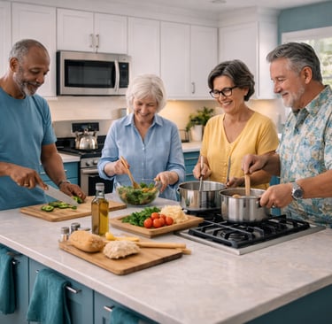 The shared kitchen is a bright and functional space where residents can prepare meals and enjoy time together. Fully equipped and designed for everyday use, it promotes independence while fostering a supportive community environment.